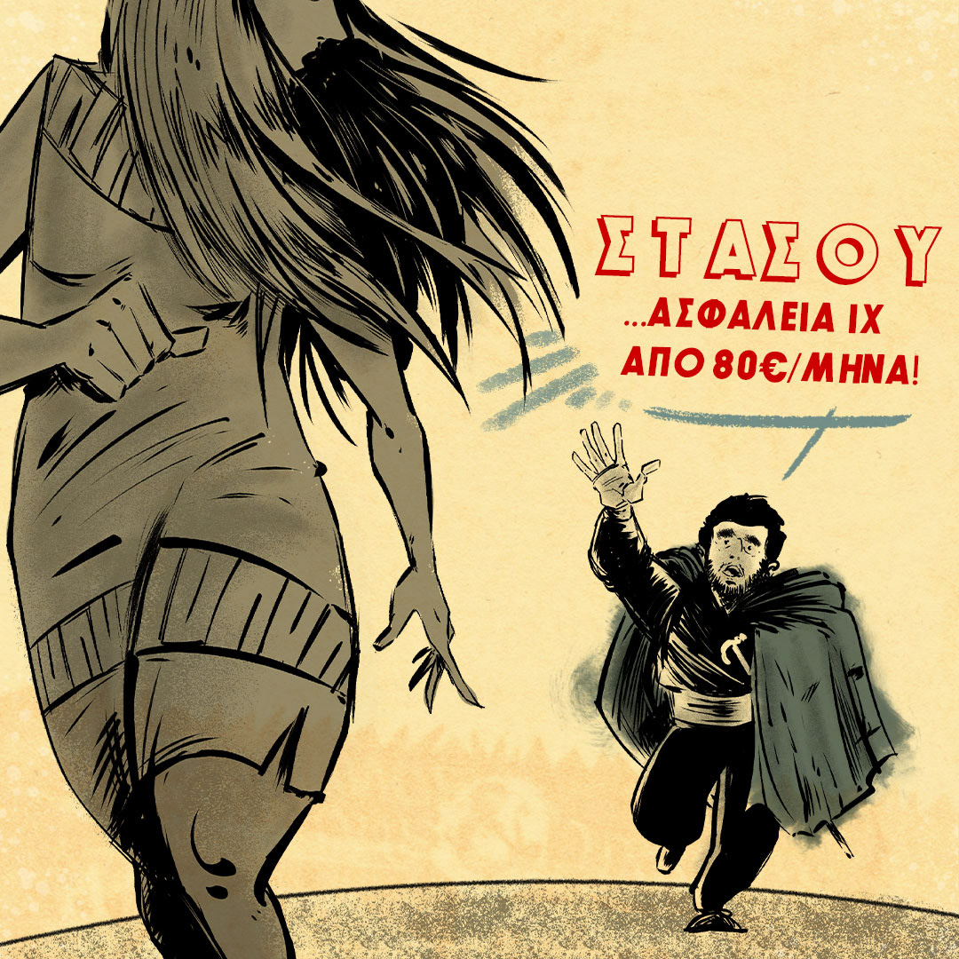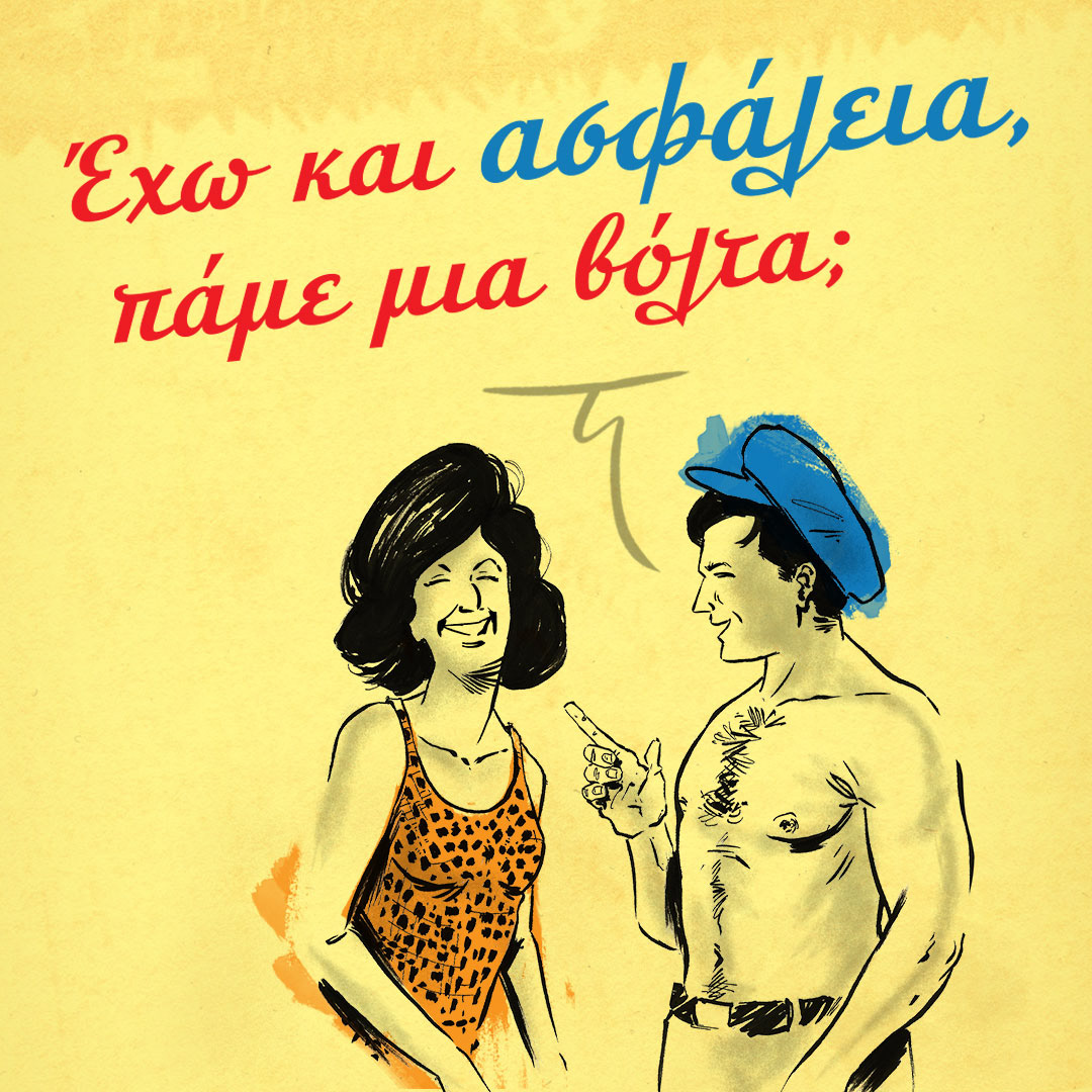 Εικονογραφήσεις βασισμένες σε ταινίες του κλασικού ελληνικού κινηματογράφου για διαφημιστικό σκοπό.